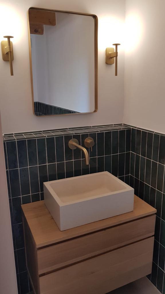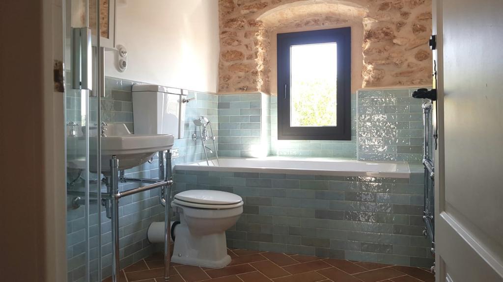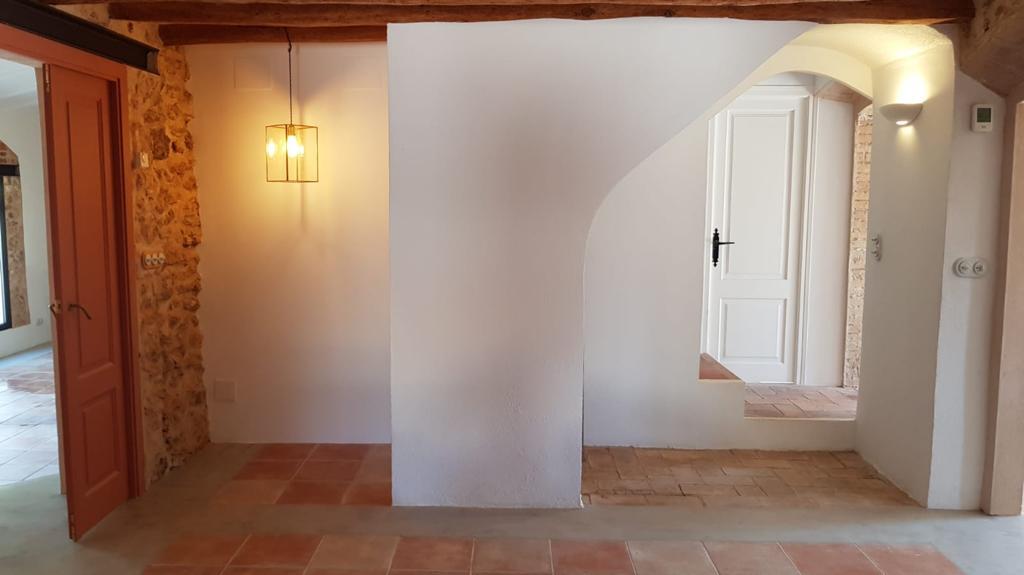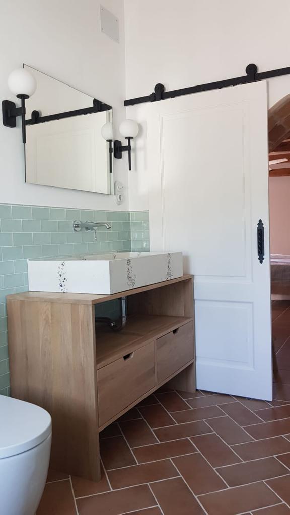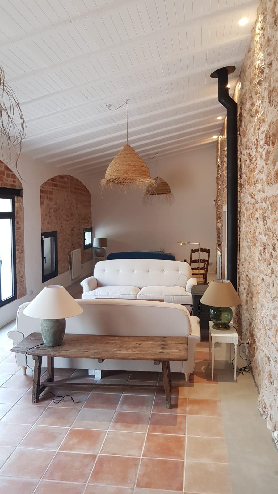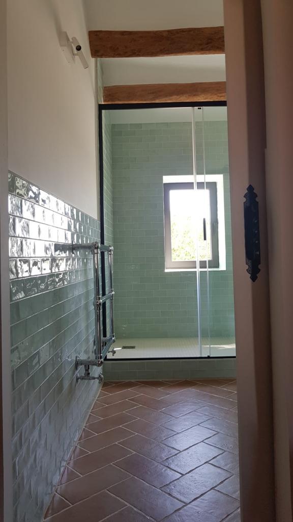 Los acabados y detalles refuerzan el carácter elegante de la vivienda, con piezas cuidadosamente seleccionadas como mecanismos Fontini, sanitarios Hudson Reed y radiadores Tesi, entre otros, dando como resultado una masía rehabilitada con un equilibrio entre tradición, confort y lujo contemporáneo.