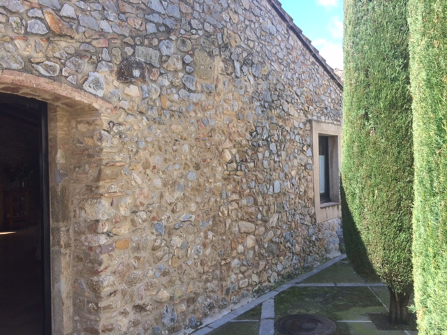 Rehabilitación de la fachada y de los espacios exteriores de la masía, preservando y poniendo en valor la arquitectura rural empordanesa, respetando sus materiales, proporciones y elementos constructivos tradicionales.