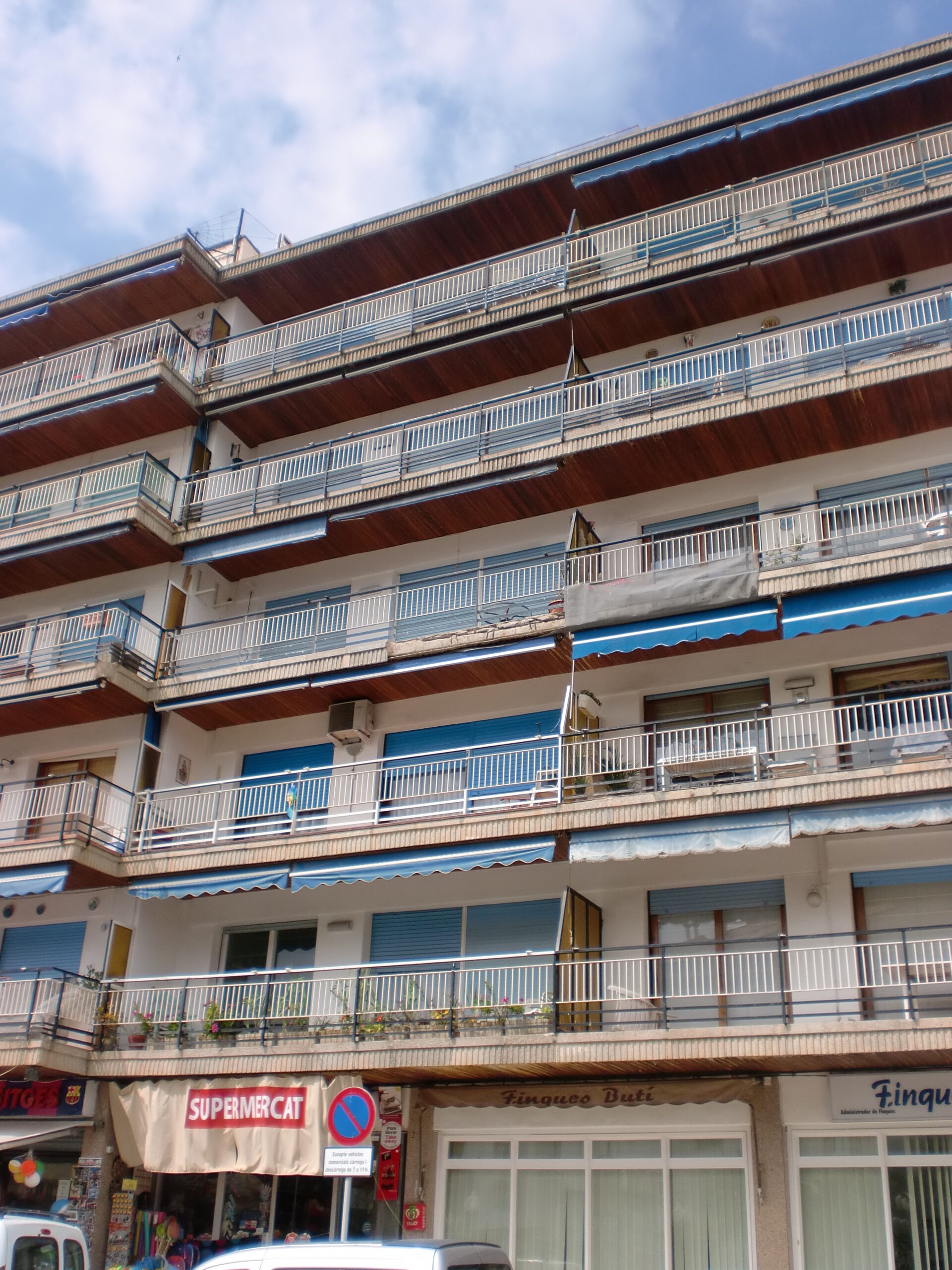 Los trabajos comenzaron con el saneado de los cantos de los forjados, eliminando las zonas deterioradas y reparando los elementos estructurales afectados. Posteriormente, se realizó el cambio de las piezas prefabricadas en aquellos puntos donde fue necesario. Asimismo, se llevó a cabo el cambio de las barandillas y del pavimento de las terrazas, mejorando la seguridad. La actuación incluyó la pintura completa de la fachada adecuada al entorno urbano de Sitges.